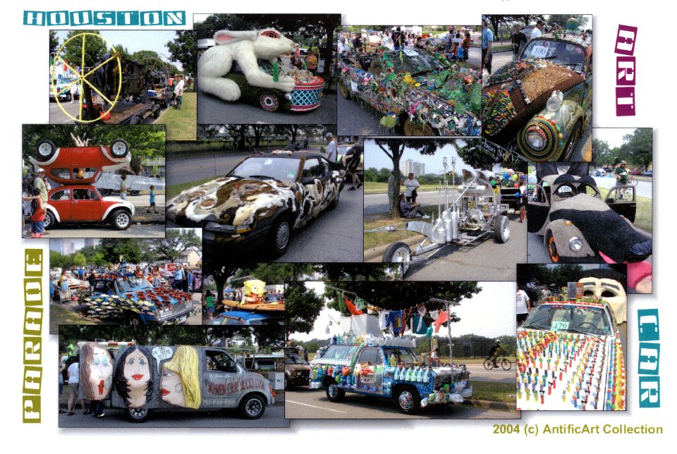 My first attempt at putting a postcard together. Photos taken from Houston's Art Car parade.