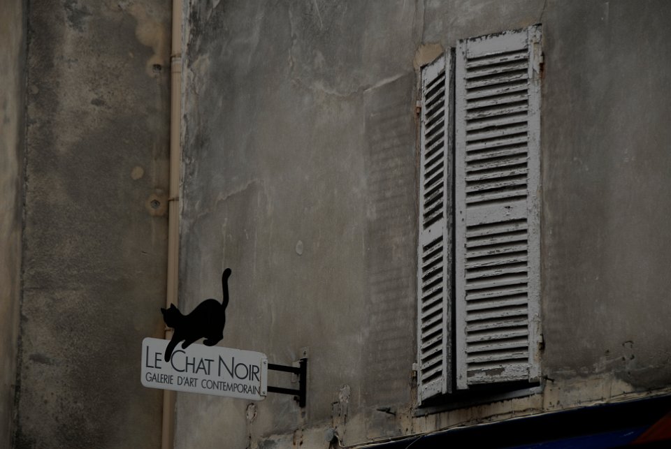 Rustic exterior of Le Chat Noir Art Gallery in Montmartre, Paris.