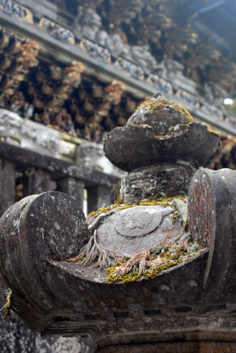 Close up of a moss covered lantern at Tosho-gu Shrine, Nikko, Japan.