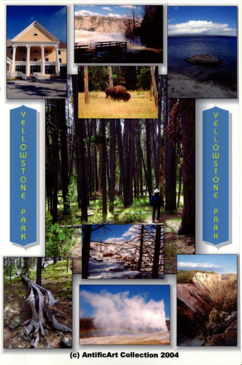 A trip to Yellowstone Park while visiting a friend in Montana (that's her with the white hat).Old Faithful (of course) is at the bottom of the card.